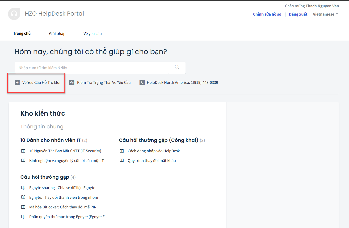 - Sau khi đăng nhập vào portal: https://hzo.freshdesk.com/