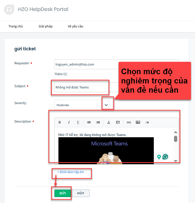 2. Bạn nhập thông tin cần hỗ trợ: Tiêu đề, nội dung, chụp lại màn hình lỗi nếu có hoặc attach file.